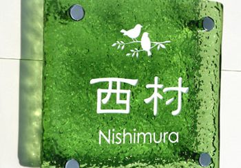 観葉植物と一緒に飾りたい♪グリーンタイプのガラス表札