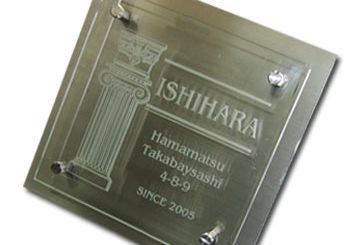 ガラスに名前を彫刻し、150角と一般的なサイズの表札に仕上げます!