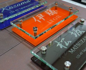 但し、文字部が彫刻のみのため薄いパール調の色合いとなり、ステンレスとの色のコントラストが少ないため、日陰などでは文字が見え難くなります。