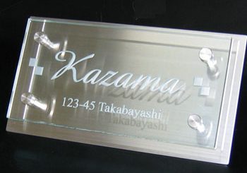 大きなガラス表札で、ちょっとした店舗や事務所・アパートなどの会社銘板としても、ご活用いただけます